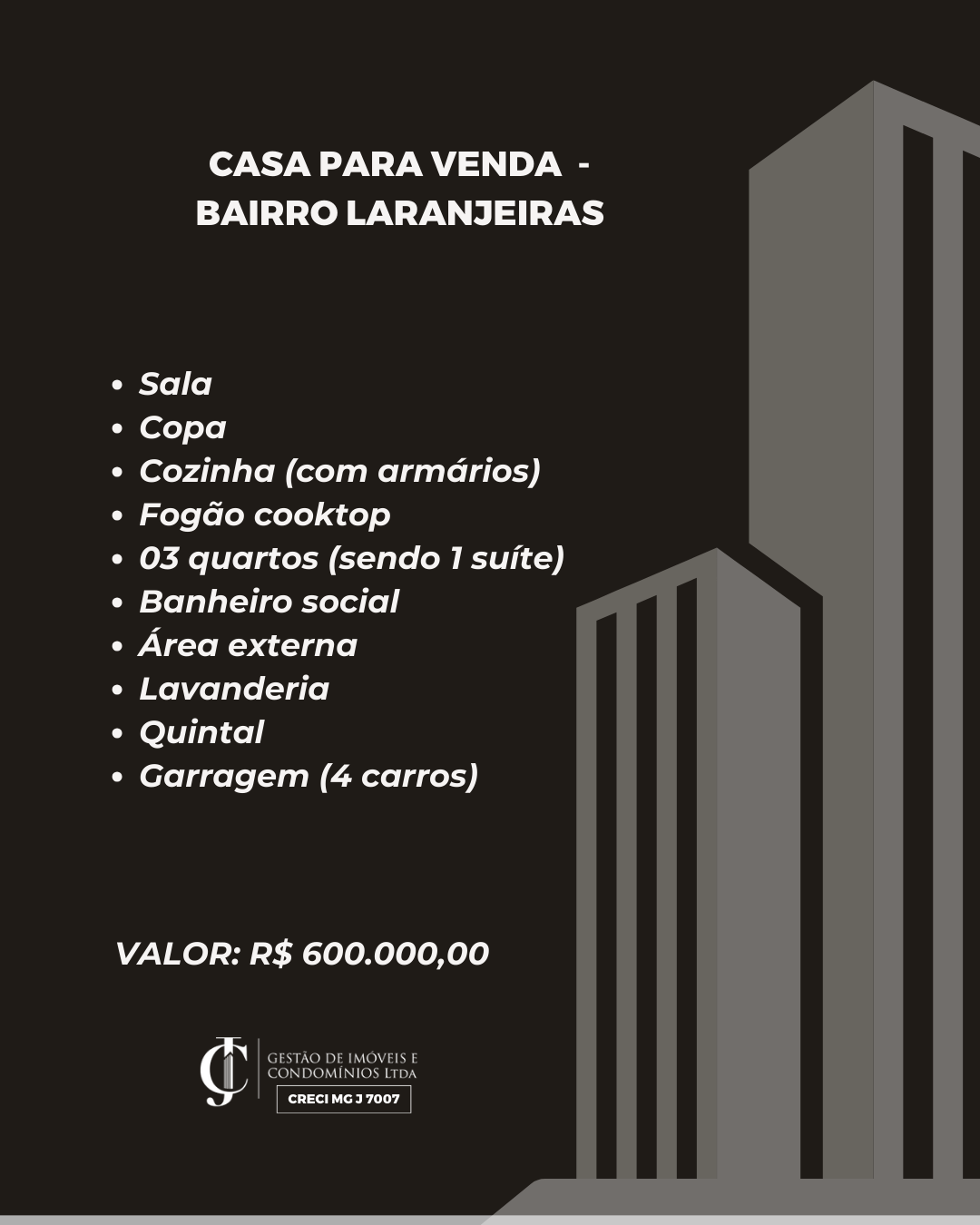 CASA À VENDA NO BAIRRO LARANJEIRAS !